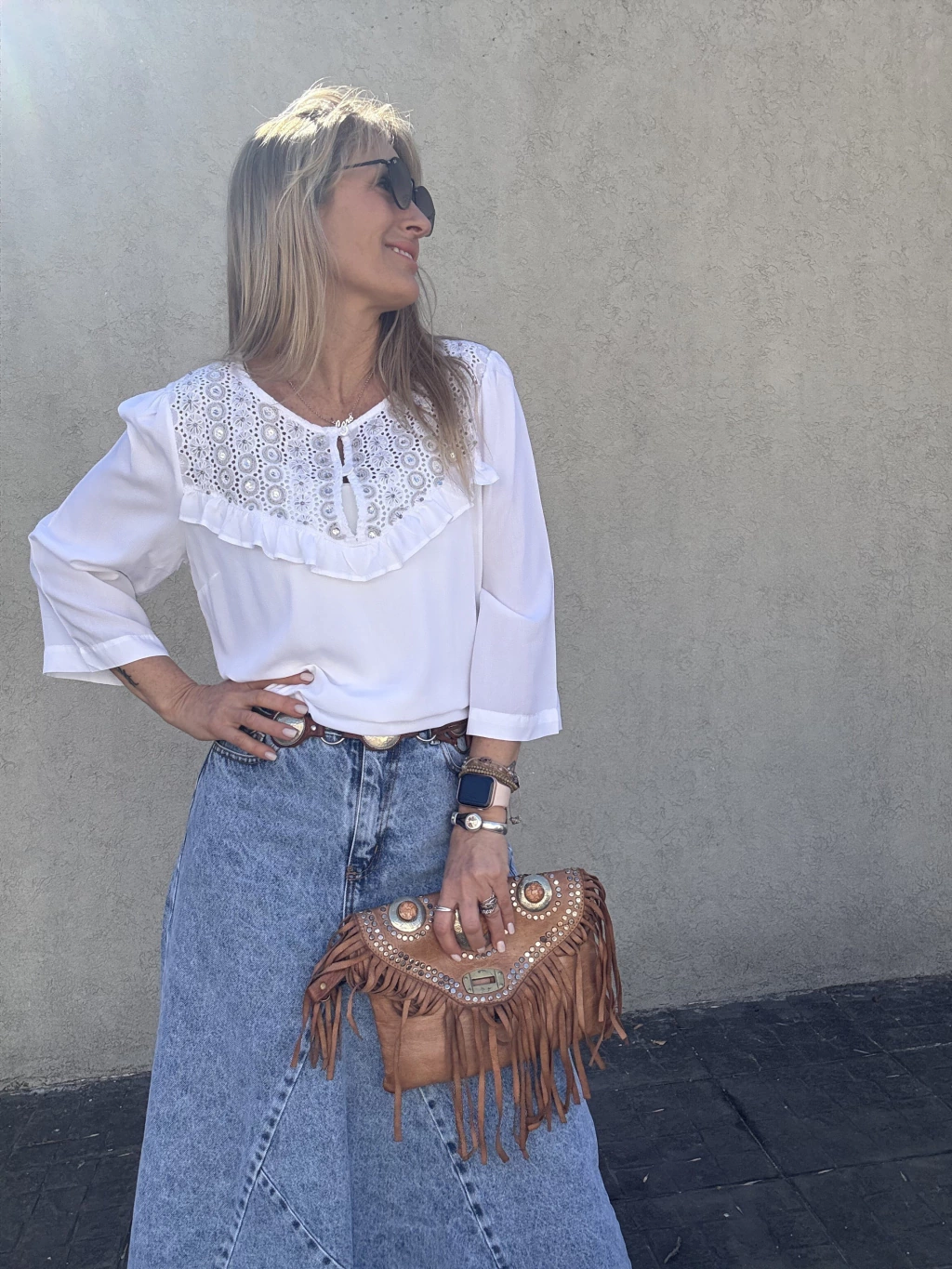 Con cuello redondo y detalle de volado en broderie calado, esta blusa blanca combina romanticismo y comodidad. Una prenda liviana y delicada para el día a día.