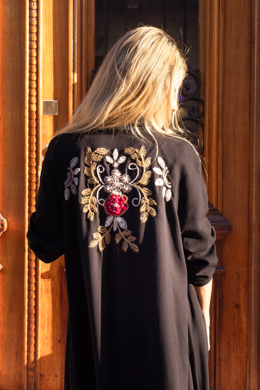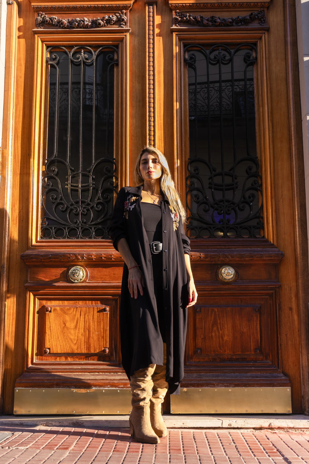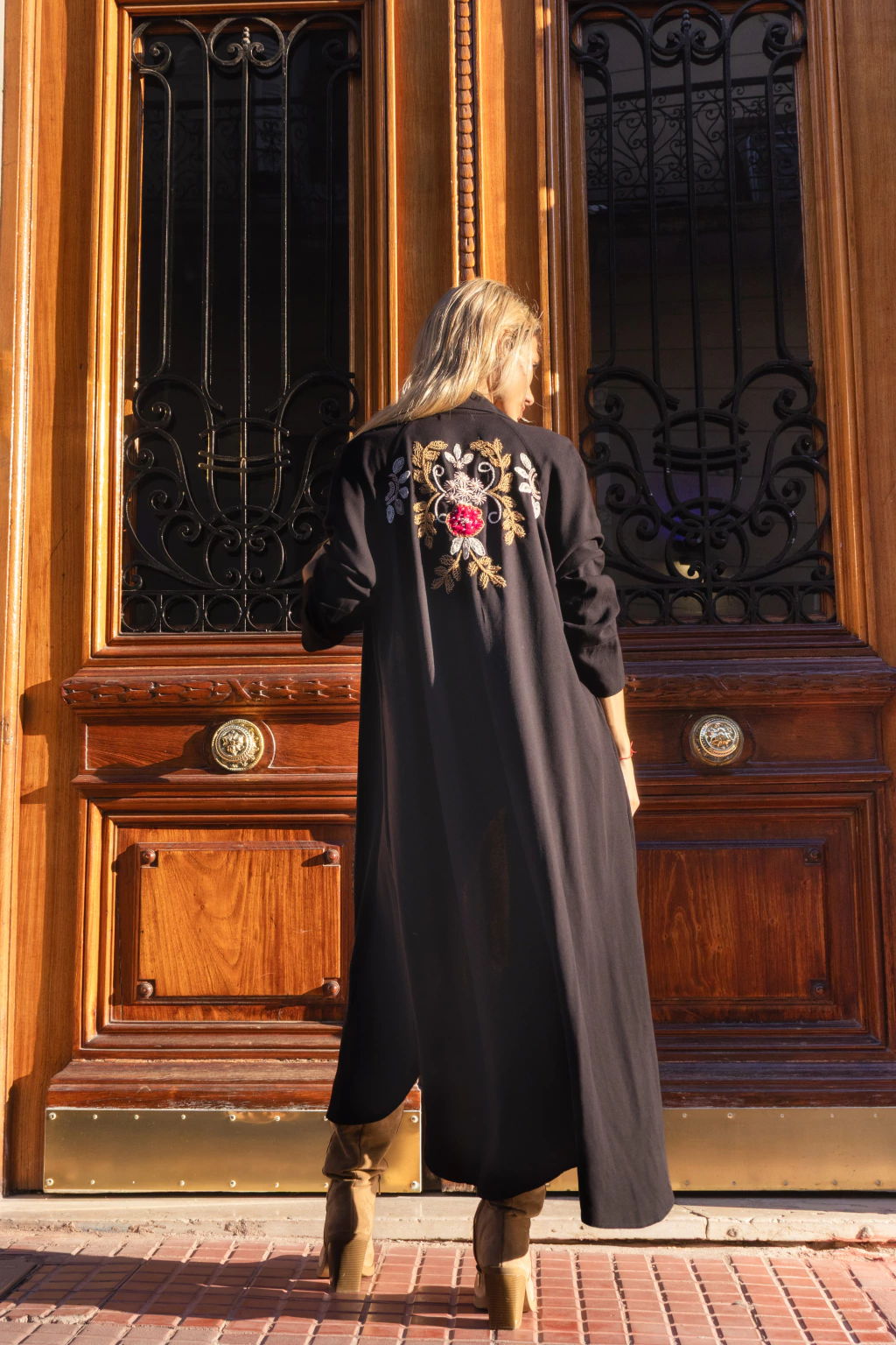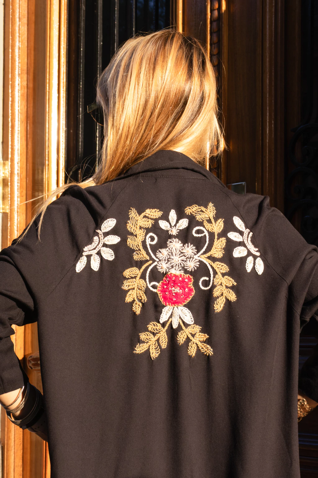 Maci camisa confeccionado en crepe. Posee bordado realizado a mano con pedreria e hilos en el frente y la espalda