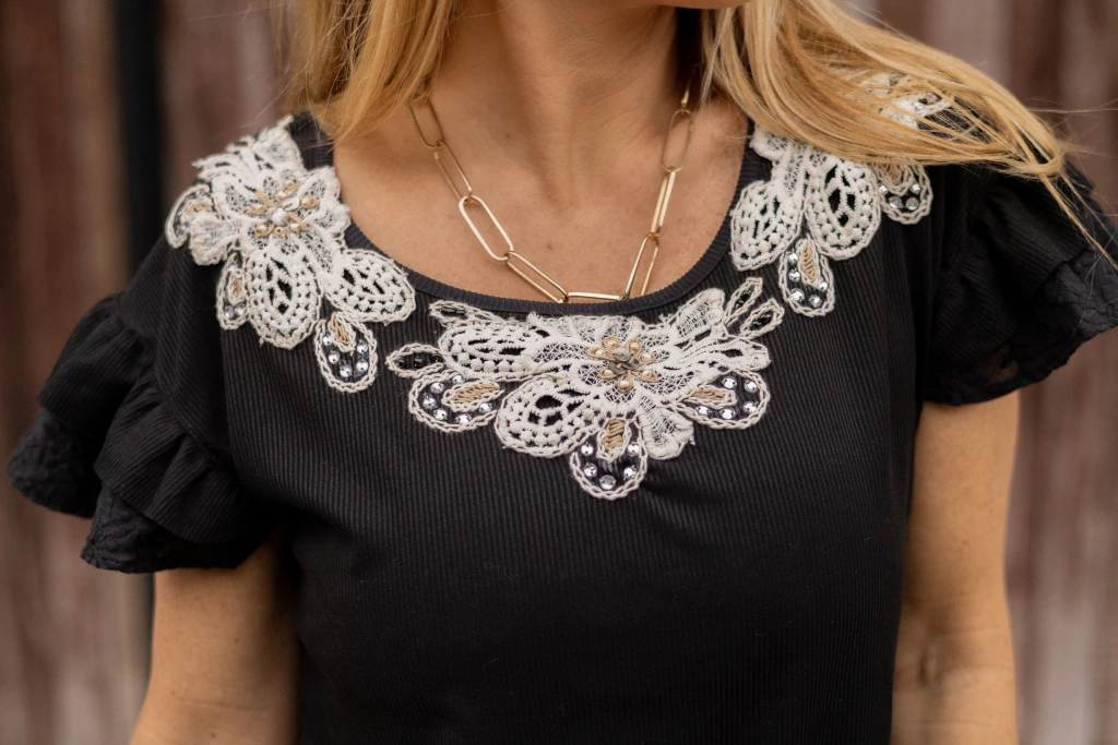 Elegí la Remera Olivia Encaje & Bordado y disfrutá de una prenda que combina textura, diseño y comodidad, perfecta para acompañarte en cada momento con un toque único y elegante.