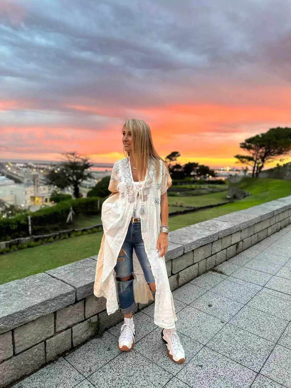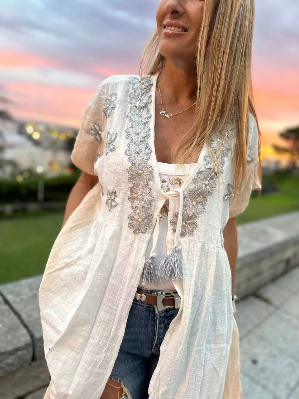 Kimono confeccionado en bambula. Bordado a mano en hombros y espalda en plateado.