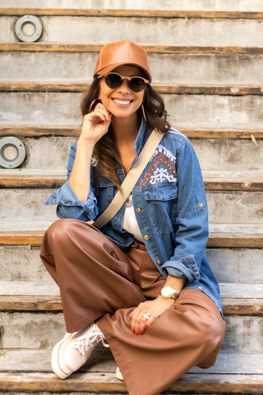 Camisa confeccionada en jean elastizado. Posee bordado realizado a mano con pedreria e hilos y en el frente y espalda.