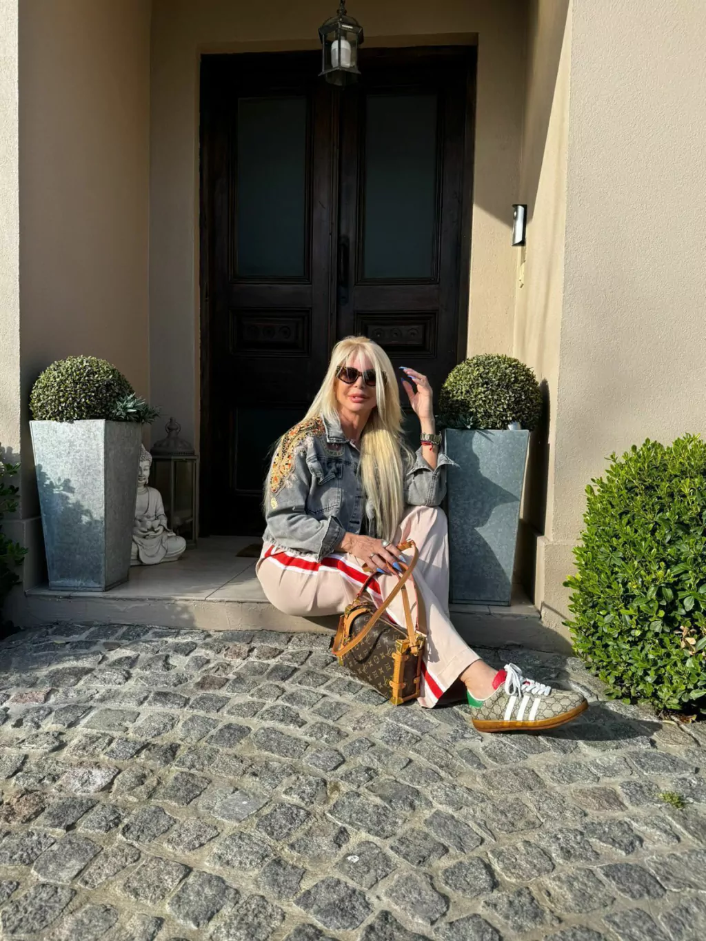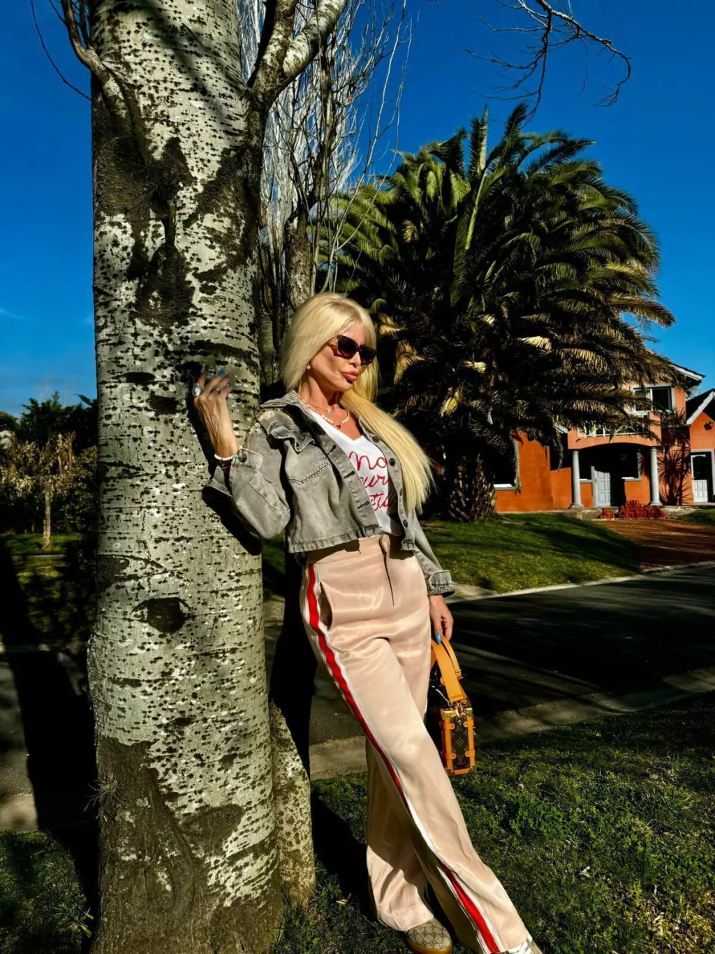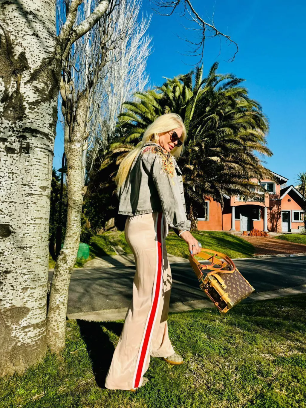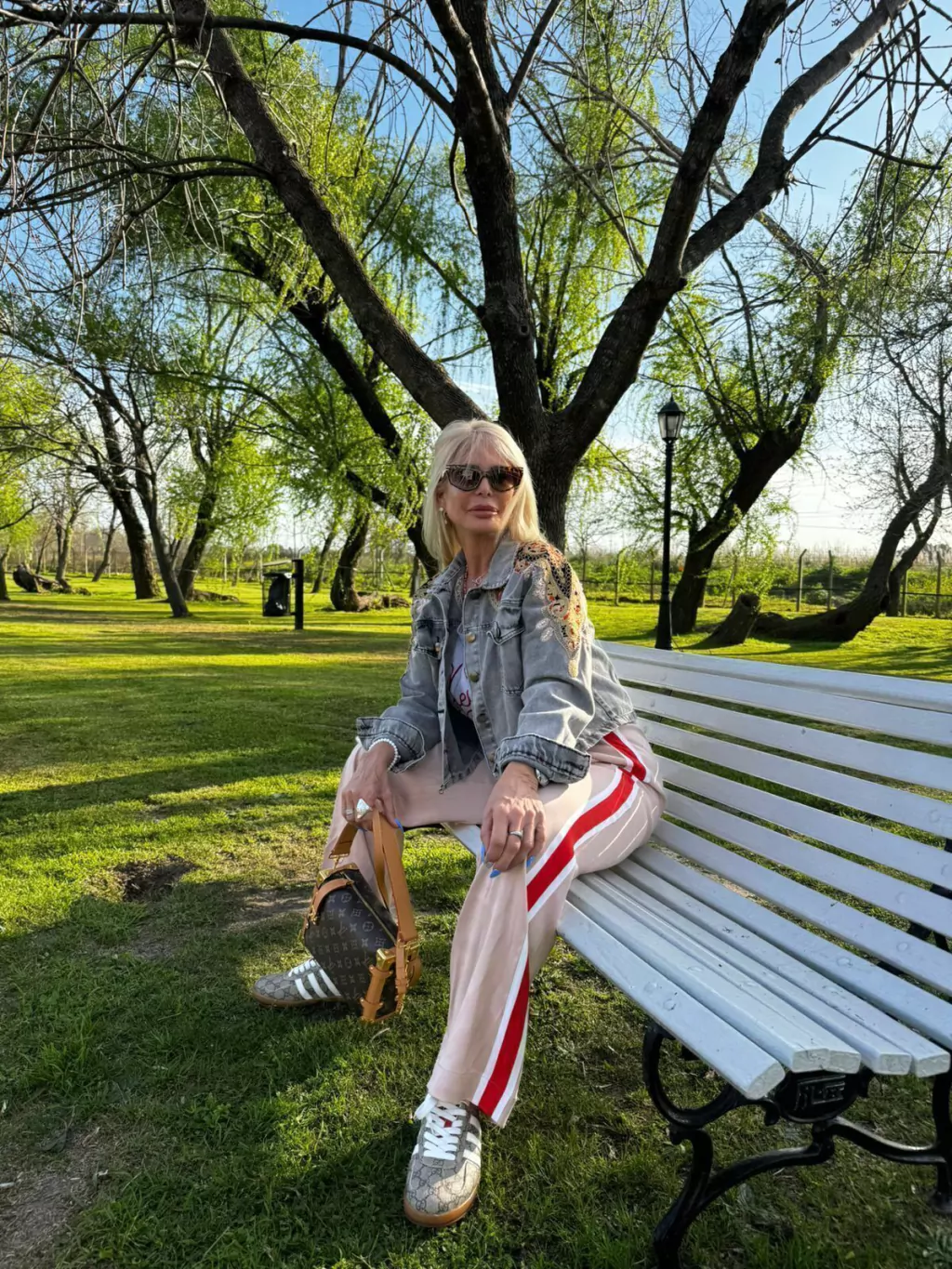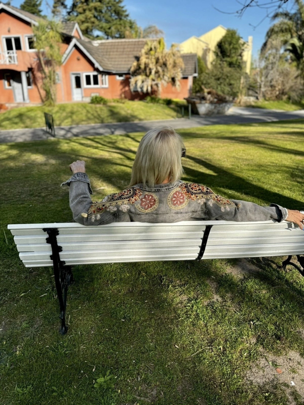 Chaqueta Denim grisácea. Bordada a mano en el frente y la espalda con aplicación de pedrería y guarda de la India en tono colores